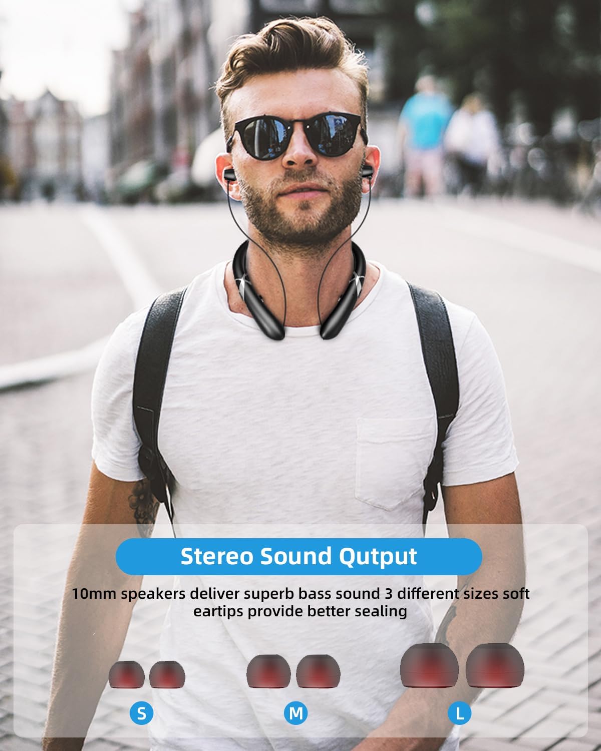 Neckband Bluetooth Headphones, Retractable Headphone Design & IPX5 Sweatproof, Vibration Alerts for Calls - Ideal for Running and Traveling, Outdoor