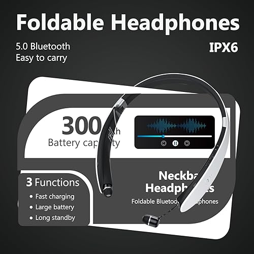 [Comfortable to Wear & IPX5 Waterproof]Crafted from lightweight, waterproof materials, these neckband Bluetooth headphones deliver a weightless feel during workouts, with a skin-friendly texture that ensures all-day comfort. Rated IPX5 for water and sweat resistance, they fear neither rain nor intense exercise perspiration. Boasting both a contractible design and a foldable body, they’re easy to slip into your pocket for on-the-go portability.