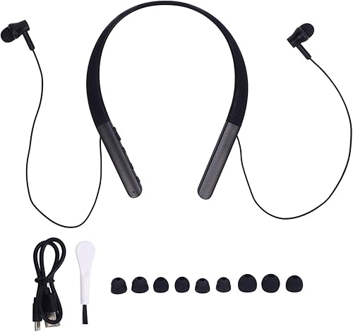 DIVERSE ACCESSORIES: This neck headphones comes with ear tips of various sizes and a cleaning tool, catering to different user needs while also simplifying maintenance.