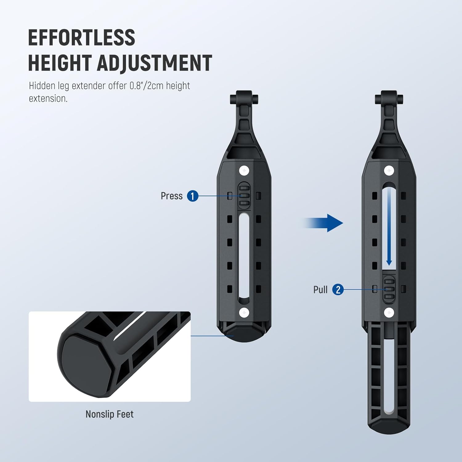 【One Button Press for Height Adjustment】 The mini tripod features a hidden telescopic design that extends its legs 0.8"/2cm more for creative possibilities. With a simple button press, you can pull out the second section legs, elevating the tabletop tripod or extending the selfie stick to capture more satisfying shots. The non skid rubber feet provide a secure grip on any surface for stable shooting