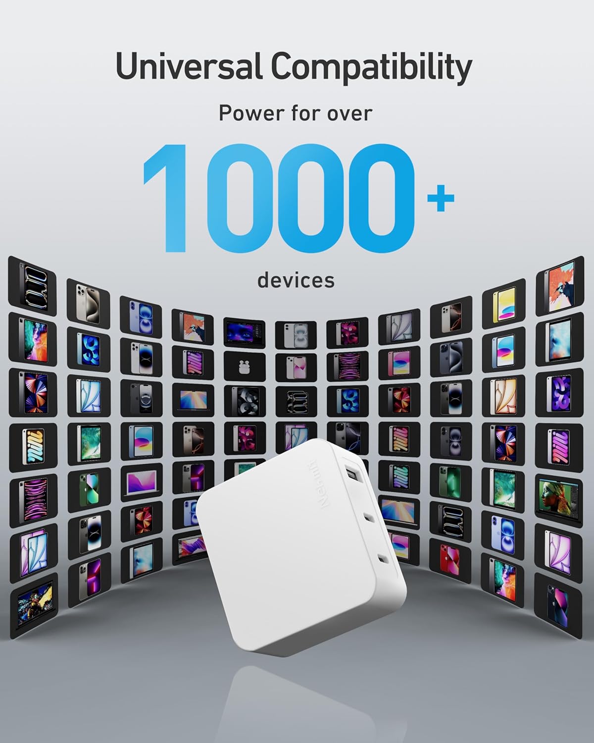 Universal Compatibility: This 67W 3 port usb wall charger is compatible with the MacBook Pro/Air, iPad Pro, iPhone 16/15/14/13 Series, Samsung Galaxy S24 Ultra, Steam Deck, and More