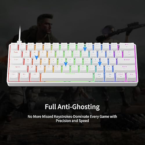 Newmen GM611 Mechanical Keyboard,Rainbow LED Backlit Gaming Wired Keyboards Compact Mini 61 Keys Portable 60 Percent Mechanical Keyboard with White Keycaps,for Windows Laptop PC Linear Red Switches(white keycaps-red switch)