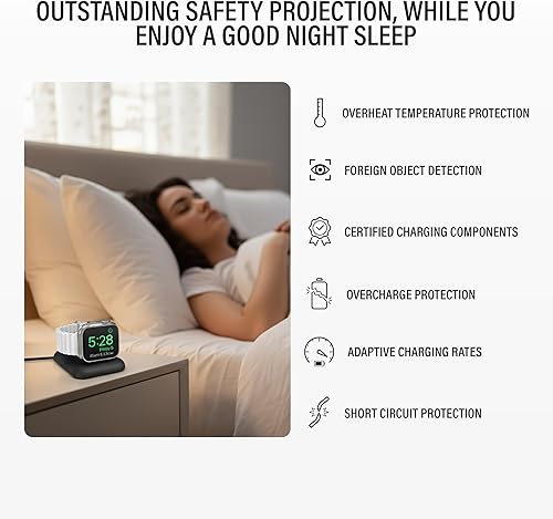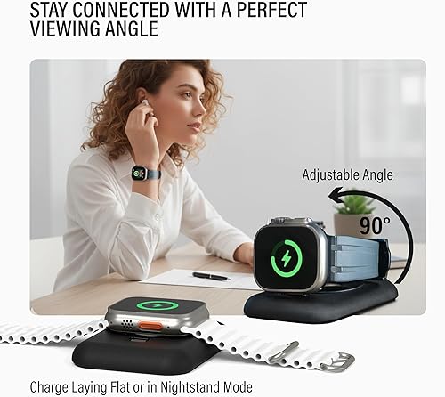 Flat or Nightstand Mode Charging: This versatile iwatch charger stand lets you power your watch flat or upright. Use Nightstand Mode as a bedside clock, or keep it flat for a clean desk setup—perfect for nightstands, offices, kitchens, or travel use.
