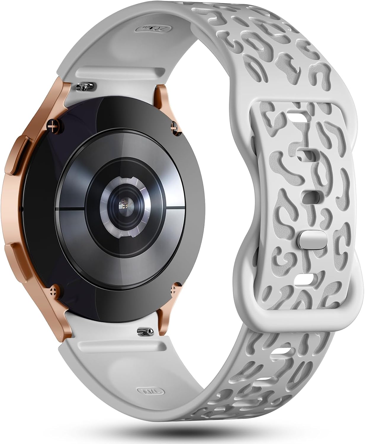 No Gap Leopard Engraved Bands Compatible for Samsung Galaxy Watch 6/5/4 Band 40mm 44mm, Watch 6 47mm 43mm,5 Pro 45mm, Watch 4 Classic 42mm 46mm, 20mm Soft Silicone Replacement Strap for Women(GR Stone)