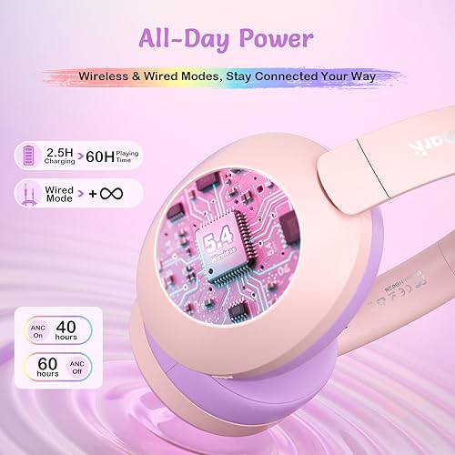 Advanced 40dB Noise Cancellation:With advanced hybrid active noise cancellation, background distractions fade away—whether it’s airplane engines, household chatter, or school bus noise. Ideal for travel, online classes, studying, or quiet downtime. Built-in microphone ensures crystal-clear calls and smooth video chat with friends or teachers.