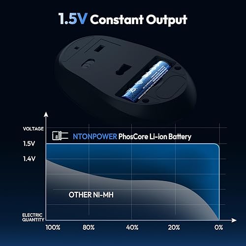 【 2100mWh Real Capacity 】The honest NTONPOWER never falsely exaggerates battery capacity. Each battery boasts a genuine capacity of 2100mWh, with three times the energy density of traditional dry cells. Repeated testing by the NTONPOWER laboratory, after it is fully charged, the wireless mouse can be used for more than 10 months.