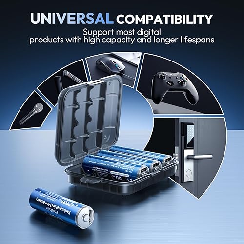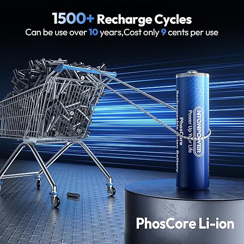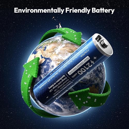 【 1500+ Recharge Cycles 】Cost-Effective & Eco-Friendly. After 100,000 real tests in our laboratory, it can be recharged over 1500 recharge cycles and has a lifespan of up to 10 years, It can be used for 5 years longer than other rechargeable lithium batteries. The average cost per use is only 9 cents, One-hundredth the cost of regular AA batteries. These batteries help you save on frequent replacements, reduce waste, and lower your carbon footprint—better for your wallet and the planet.