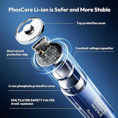 【 More Advanced and Safer 】NTONPOWER rechargeable lithium batteries use advanced ‘’ PhosCore‘’ IC chips to ensure that the voltage is always stable at 1.5V and will not decrease as the battery power decreases. It can also provide multiple protections: overcharge protection, overvoltage protection, overcurrent protection, overdischarge protection, overload protection, leakage protection, short circuit protection, and overheat protection.