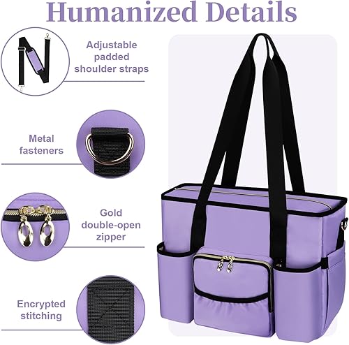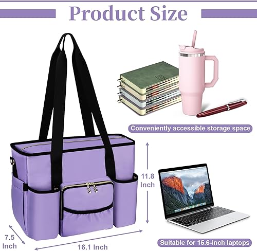 Nurse Bag, Work Bags with 15.6-inch Laptop Compartment, Teacher bag with Large Cup Holder, Nursing Tote Bag with Insulated Pocket for Nurses, Teachers, Students, and Professionals, Black(PURPLE)