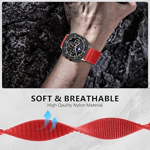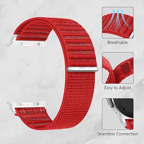Nylon Loop Bands for Samsung Galaxy Watch 8 Band 40mm 44mm/8 Classic 46 mm Men/Women,Soft Fabric One Click No Gap Sport Strap for Samsung Galaxy Watch 8 Classic Band 46mm/8 44 mm 40 mm Correa(07-Red,Galaxy Watch 8/8Classic Band)