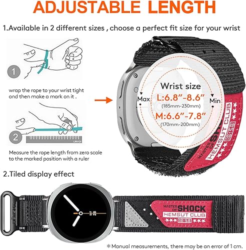 Comment on "Nylon Strap Compatible with Samsung Galaxy Watch 8 40mm 44mm/Galaxy Watch 8 Classic 46mm (2025),Millitary Nylon Bracelet Galaxy Watch Ultra for Men(Black / Silver Buckle-1,Large 6.8"-8.6")"