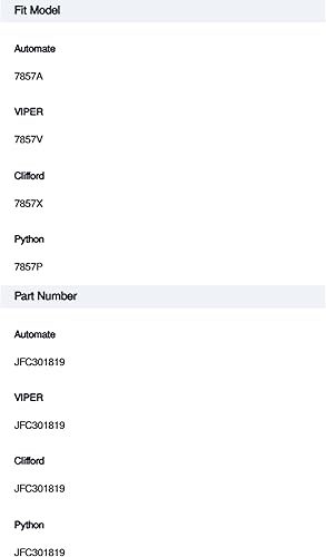 • Direct Replacement for: Fit Model: VIPER 7857V | OEM Part Number: JFC301819