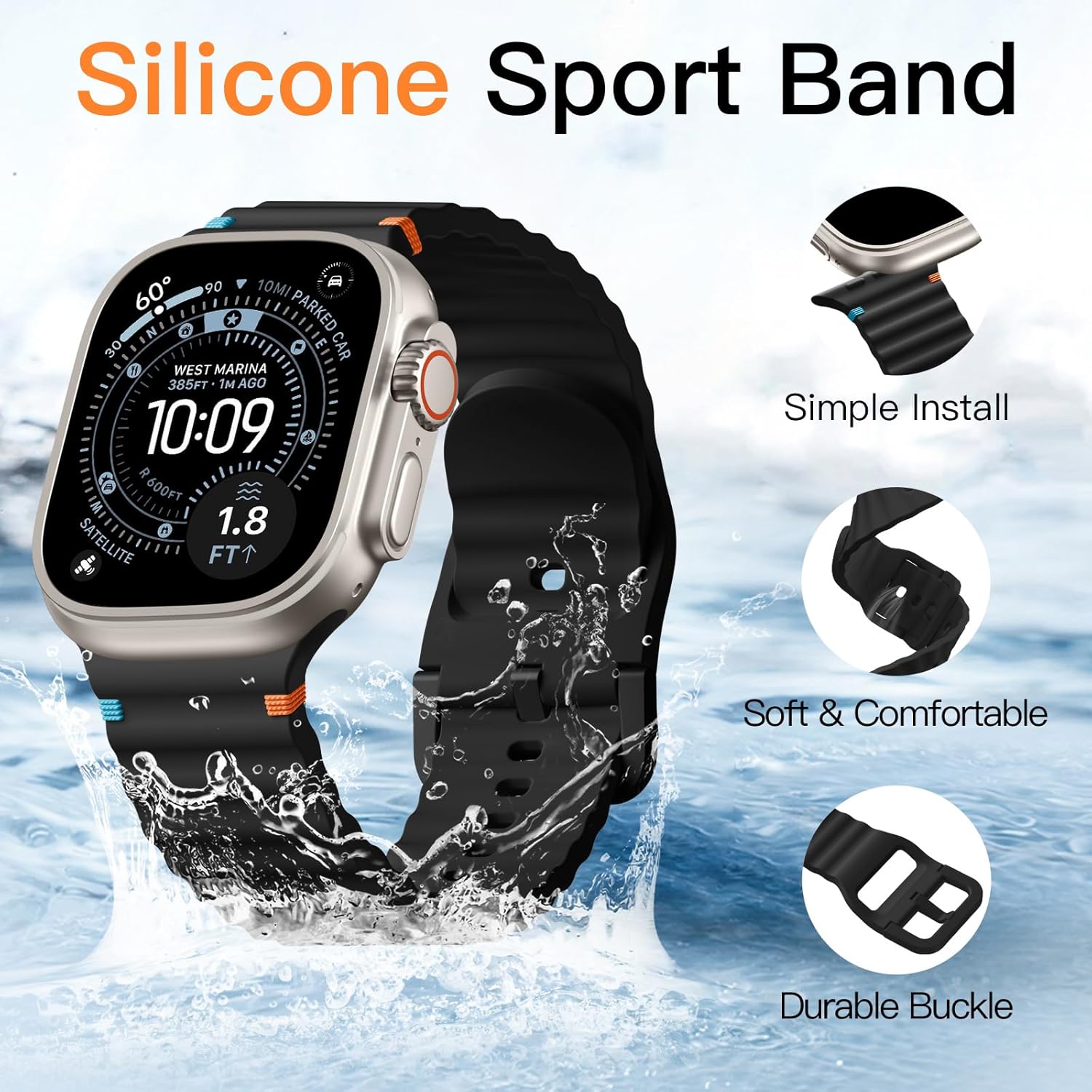 【Unique Stylish & Ocean Wave Design 】Odbeai stylish ultra 3 watch band combination of wave patterns and brightly colored stitches a touch of color for iwatch in a low-key manner. For iwatch ultra bands men,multiple colors are available,you can change your style anytime and anywhere. Both sides with orange blue stitching let your Watch more special,enhancing the overall aesthetic. Ultra 2 watch band keep your wrists cooler and comfortable during sports,work or daily life
