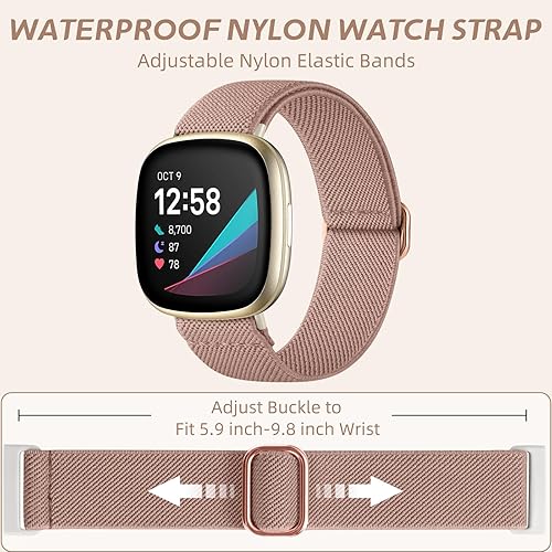 Easy Adjustment with Elastic Fit: Our elastic nylon band compatible with Fitbit Sense 2 bands/Sense bands is made of stretchy nylon material and features an adjustable buckle design. This band offers excellent elasticity and flexible adjustability, allowing you to easily customize the tightness based on your wrist size for a natural fit. Whether you're working out or wearing it all day, it provides a comfortable and secure fit throughout the day. Fit for wrist sizes 5.9-9.8 inch (150-248mm)