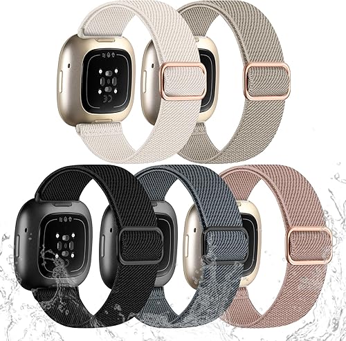 Water Resistant: Our waterproof elastic bands compatible with Fitbit Versa 4 bands for woman feature advanced waterproof coating technology, effectively preventing the penetration of water, sweat, light rain, or splashes. Even if exposed to certain spills, such as coffee, you can simply rinse it with water within one minute to clean the bands. You don't have to worry about moisture affecting the bands, making them suitable for various sports and leisure occasions