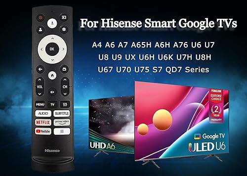 OEM Replacement Remote Control for All Hisense UHD 4K ULED Smart Google TVs with Voice Control (Audio/Subtitle/Netflix/Prime Video/YouTube/Menu)(Audio/Subtitle/Netflix/Prime Video/YouTube/Menu)