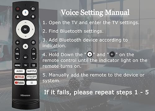 Comment on "OEM Replacement Remote Control for All Hisense UHD 4K ULED Smart Google TVs with Voice Control (Audio/Subtitle/Netflix/Prime Video/YouTube/Menu)(Audio/Subtitle/Netflix/Prime Video/YouTube/Menu)"