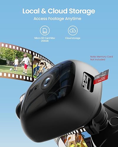 Flexible Storage: Cloud & SD Card (256GB Max): Save recordings securely via cloud or local SD card (not included). Your outdoor security camera footage stays accessible anytime.