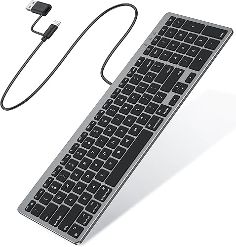 OMOTON Wired Keyboard Compatible with Mac, with Dual Interface (USB and Type-C), Numeric Keypad Compatible with MacBook Pro/Air, iMac, Mac mini/Pro Laptop, Grey(Grey)