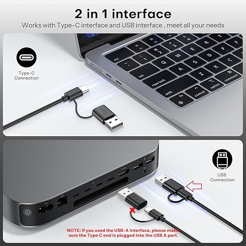 Easy Plug and Play: Visual wired connection, no worry about the instability of Bluetooth connection. Works with Type-C interface and USB interface(NOTE: If you used the USB A interface, please make sure the Type-C is plugged into the USB A port.), one keyboard compatible with your all Mac devices