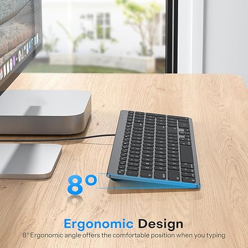 Ergonomic Design: With an 8° lift, this keyboard provides the perfect wrist angle for comfortable typing. The scissor-foot design ensures each keystroke is smooth and fluid
