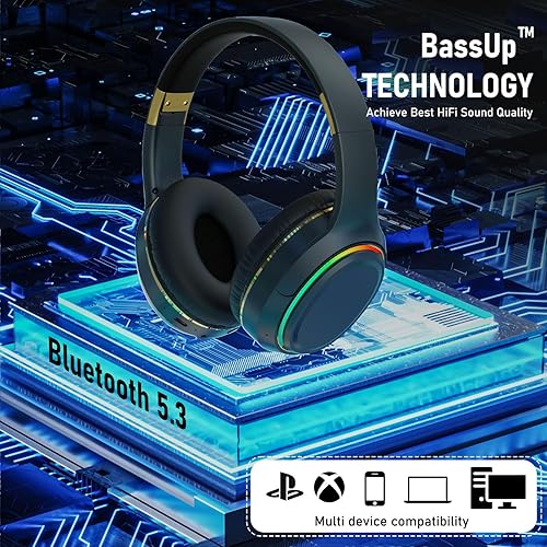 OOYY Wireless Bluetooth Headphones with RGB LED Lighting, Foldable Over-Ear Headphones with Hidden Mic for Cell Phone, Laptop, PC, Suitable for School, Workouts, Listening Music, and Gaming