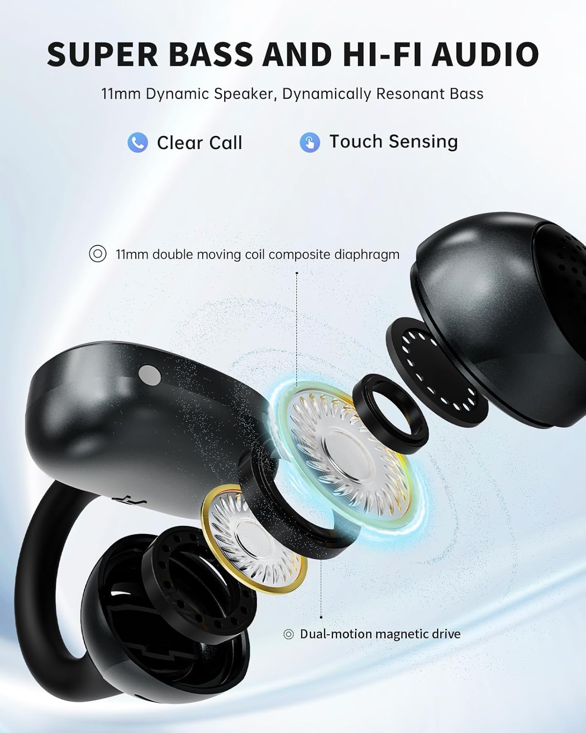 Designed for a Secure Fit: Features an advanced curved ergonomic clip and flexible TPU C-Ring that adjust to your unique ear shape for a snug, stable grip. Combined with innovative, non-deforming hard-shell material that ensures lifetime shape retention, this design delivers unwavering stability during sports, workouts, or gym sessions. Enjoy all-day comfort with the open ear headphones that stay perfectly seated, and experience immersive audio with minimized sound leakage for private listening