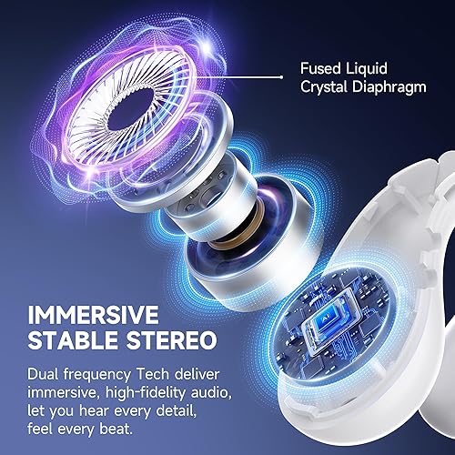 VNMN open ear earbuds adopt to Dual frequency tech and fused liquid crystal diaphragm that let you feels like being in the front row of a live concert—with distinct instrumental layers, crystal-clear vocals, and a three-dimensional sound stage, even in the noisy environment. Yet remarkably, they allow clear ambient awareness, enabling natural conversations without removing them. It's as if the music envelops only you, while keeping the world within reach. These sport open ear headphones are especially suitable for work, social gatherings, or on-the-go act.