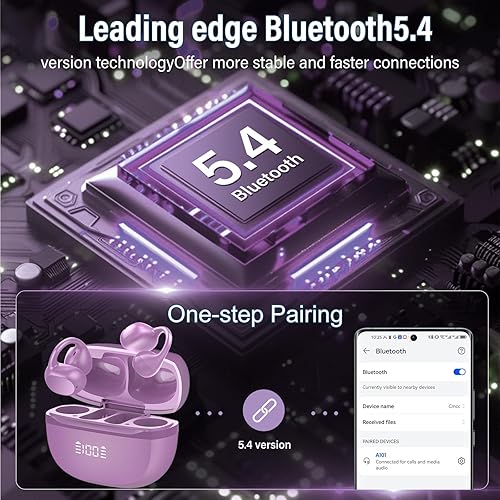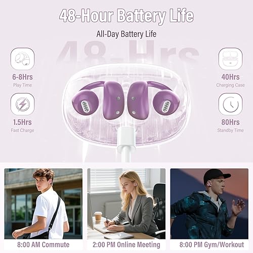 48-Hours Power Marathon & LED Power Tracker: Designed for long-lasting use, A101 clip-on headphones offer up to 8 hours of playtime per charge, extended to 48 hours with the charging case. The built-in LED display shows exact remaining power (0-100%)Built tough with 800+ charge cycles, these bluetooth earbuds are future-proof.