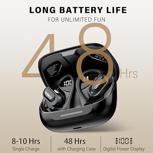 True Open-Ear Design: QXUFV open ear earbuds are crafted to rest gently around your ears, keeping your ear canals completely open for a truly comfortable and secure fit. Made from ultra-lightweight, skin-friendly materials and weighing just 9.5g, wireless earbuds are so light you can wear them all day without feeling a thing. Say goodbye to ear fatigue and enjoy effortless, all-day comfort.