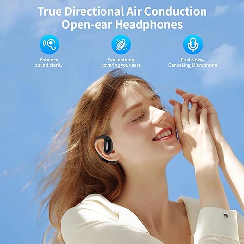 Open Ear Headphones Bluetooth Wireless Earbuds with Bone Conduction Technology, Safe Fit, Smart Microphone & Long Battery Life