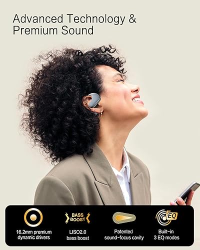 LARGER SPEAKERS, BOLDER SOUND: With 16.2mm dynamic drivers, our open ear headphones provide deeper bass, richer mids, and greater soundstage than standard 14.2mm units. While built-in 3 EQ modes (no app needed) to suit your preference