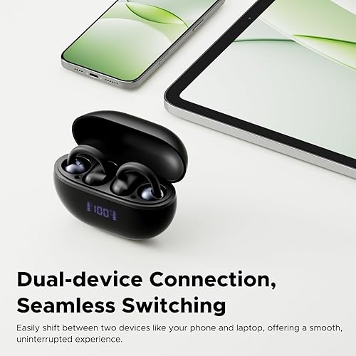 【Open-Ear Comfort & Ergonomic Clip-On Fit】Experience all-day lightweight comfort (4.98g per ear) with medical-grade TPE ear hooks and aerospace aluminum alloy headphones. Designed using 50,000+ human ear data models, these secure wireless earbuds stay stable during running, cycling, or hockey games. The open-ear design eliminates ear canal pressure while maintaining private directional audio – ideal for situational awareness in urban commutes or hiking trails.