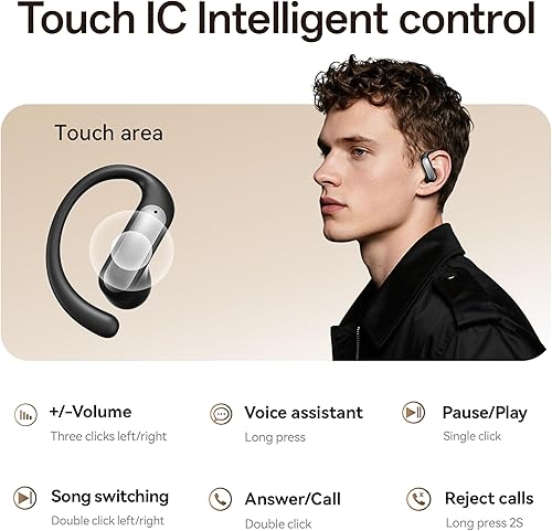 Comfortable Fit and Convenient Touch Controls: Featuring ergonomic ear hooks and a distinctive open-ear design, Wireless earbuds are ideal for prolonged use without causing discomfort. These earbuds allow for effortless music control, including playing, pausing, and skipping tracks, all via touch controls that respond to a simple tap.