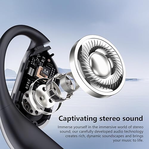 Powerful Stereo Sound & Clear Call: With built-in 16.3mm dynamic drivers, you can immerse yourself in rich audio that makes you to perceive subtle difference in the music. Enjoy the good reproduction of instruments and vocals. These advanced drivers also excel in ensuring crystal-clear communication. By accurately capturing the voice, these open ear wireless bluetooth earpieces transform into a conduit of unobstructed conversations, as if you were speaking face to face