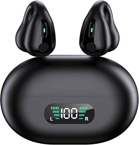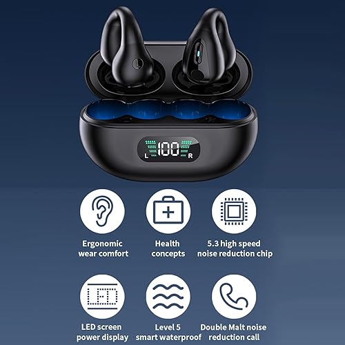 Open-Ear Wireless Headphones Bluetooth Earbuds: HiFi Sound Quality, HD Voice Technology, ENC intelligent noise reduction, Comfortable to wear, Bluetooth 5.3, Button control, Smart memory connection, LED Power Display Charging Case( HD digital display, Real time clear battery level for left and right earphones and charging compartment at a glance), IPX5 Sweat-resistant.