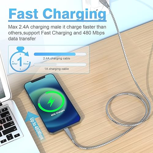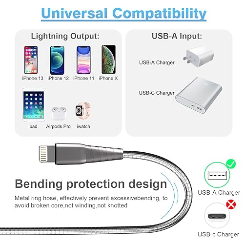 Wide Compatible: MFI certified iPhone Metal braided cable cords are built with authorized smart chipset with NO ERROR message shows up. This MFI certified iPhone Heavy duty charger cable is compatible with iPhone 14/13/12/11/X/8/7/6 series, i-pad pro i-pod