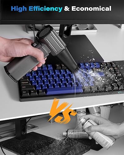 Turbo Mode & 3-Gear Adjust: This compressed air duster has 3 airflow settings and a turbo mode, which allows you to adjust the airflow to any cleaning task. Long press and hold the turbo button to activate turbo mode for maximum wind power-130000RPM.