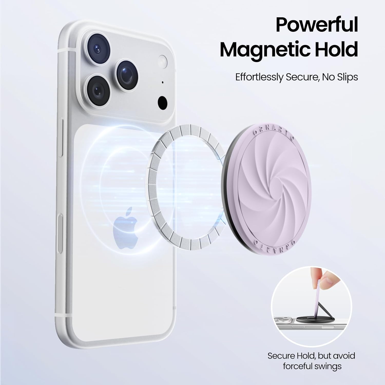 Details That Make It Easier: Doubles as a magnetic stand for hands-free portrait or landscape viewing on on firm, flat surfaces | Compact design for pocket-friendly | 360°Rotatable for your ideal comfort grip angle | Easy to Clean-Always Stays Pristine | Works perfectly for iPhone 17/16/15/14/13/12 series and for MagSafe cases | Protected by ORNARTO’s 365-day warranty and supported 24/7, you can count on professional assistance whenever needed