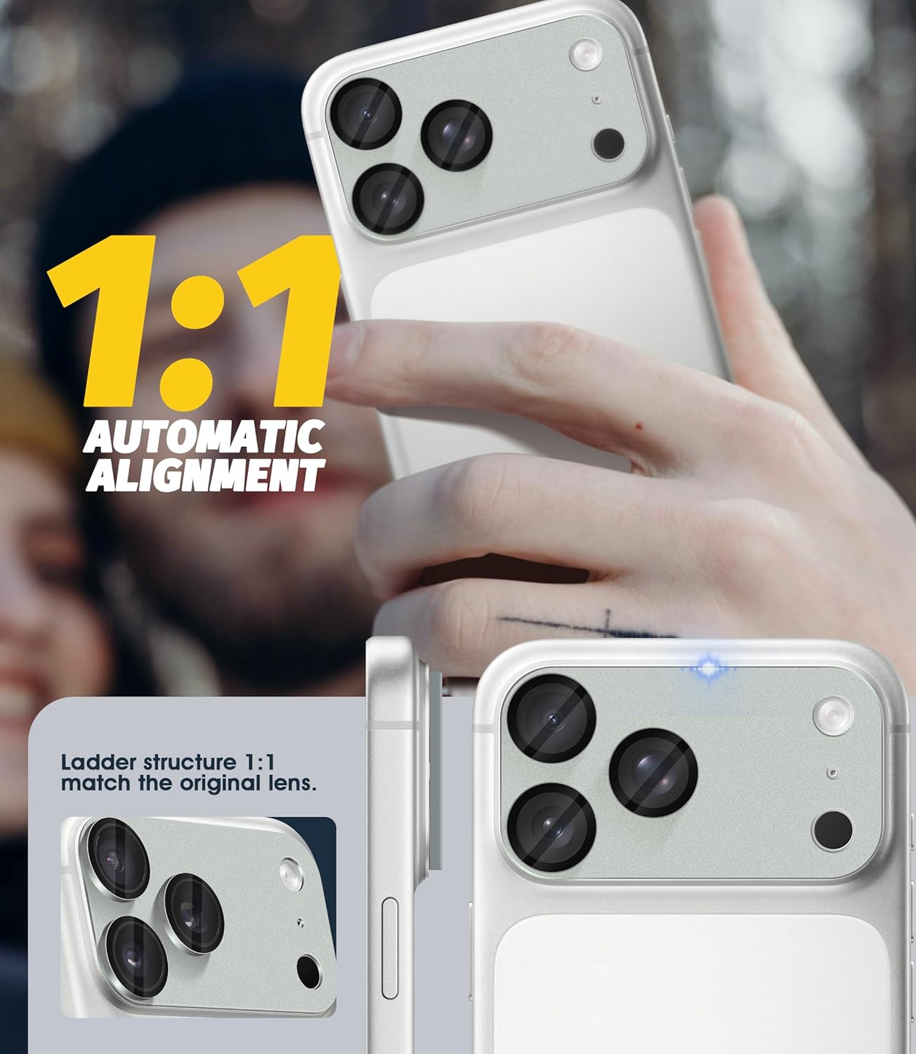 Compatibility: Specially designed for iPhone 17 Pro Max, our camera lens protector is made of high-quality matte metal aluminum alloy for a perfect fit. Tempered glass is added to the camera cutouts for double protection against daily bumps and scratches, safeguarding each lens without compromising image quality