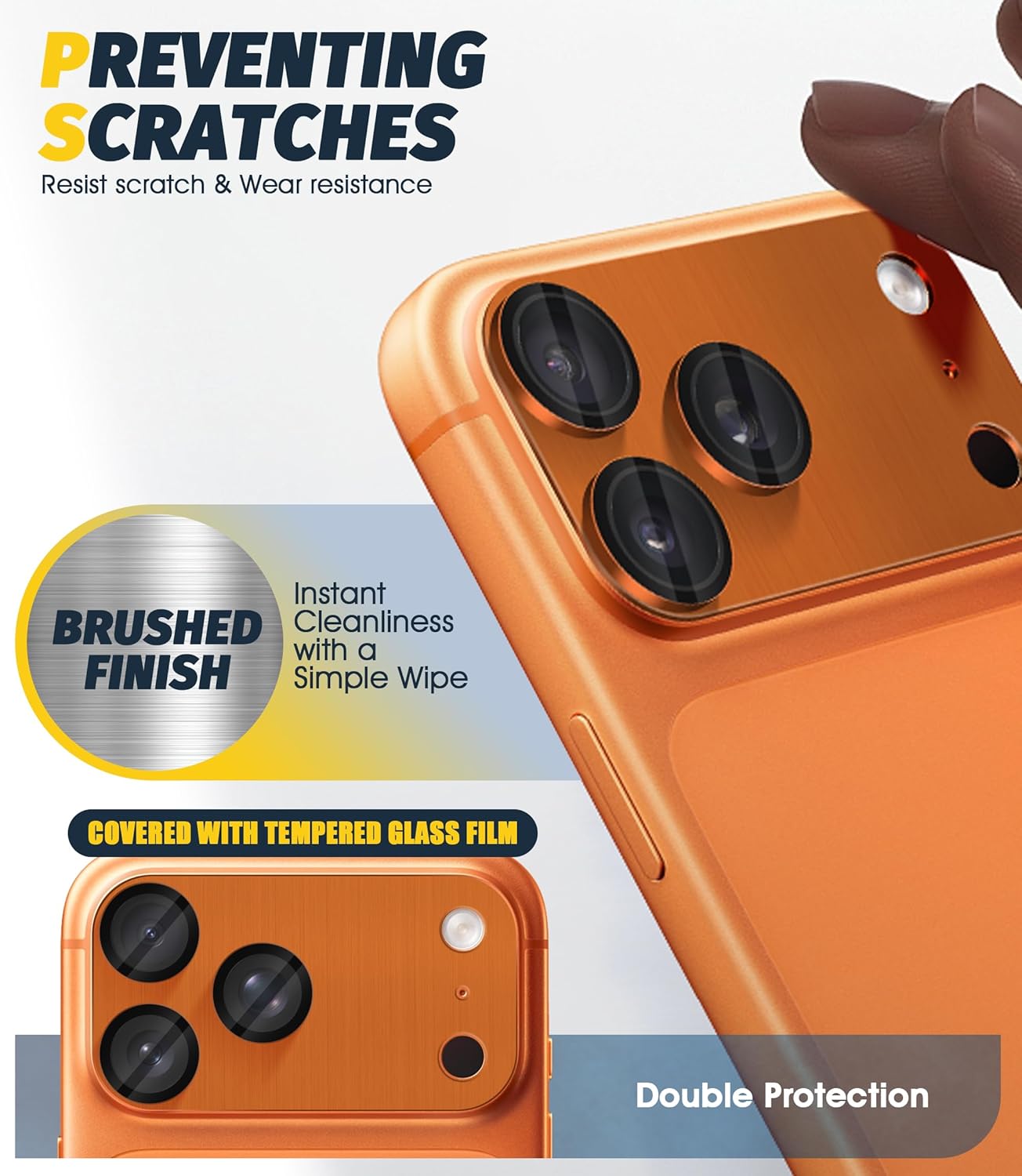 Compatibility and Upgraded Protection: Specially Designed for iPhone 17 Pro, our camera lens protector is made of high-quality brushed metal aluminum alloy for a perfect fit. Tempered glass is added to the camera cutouts for double protection against daily bumps and scratches, safeguarding each lens without compromising image quality