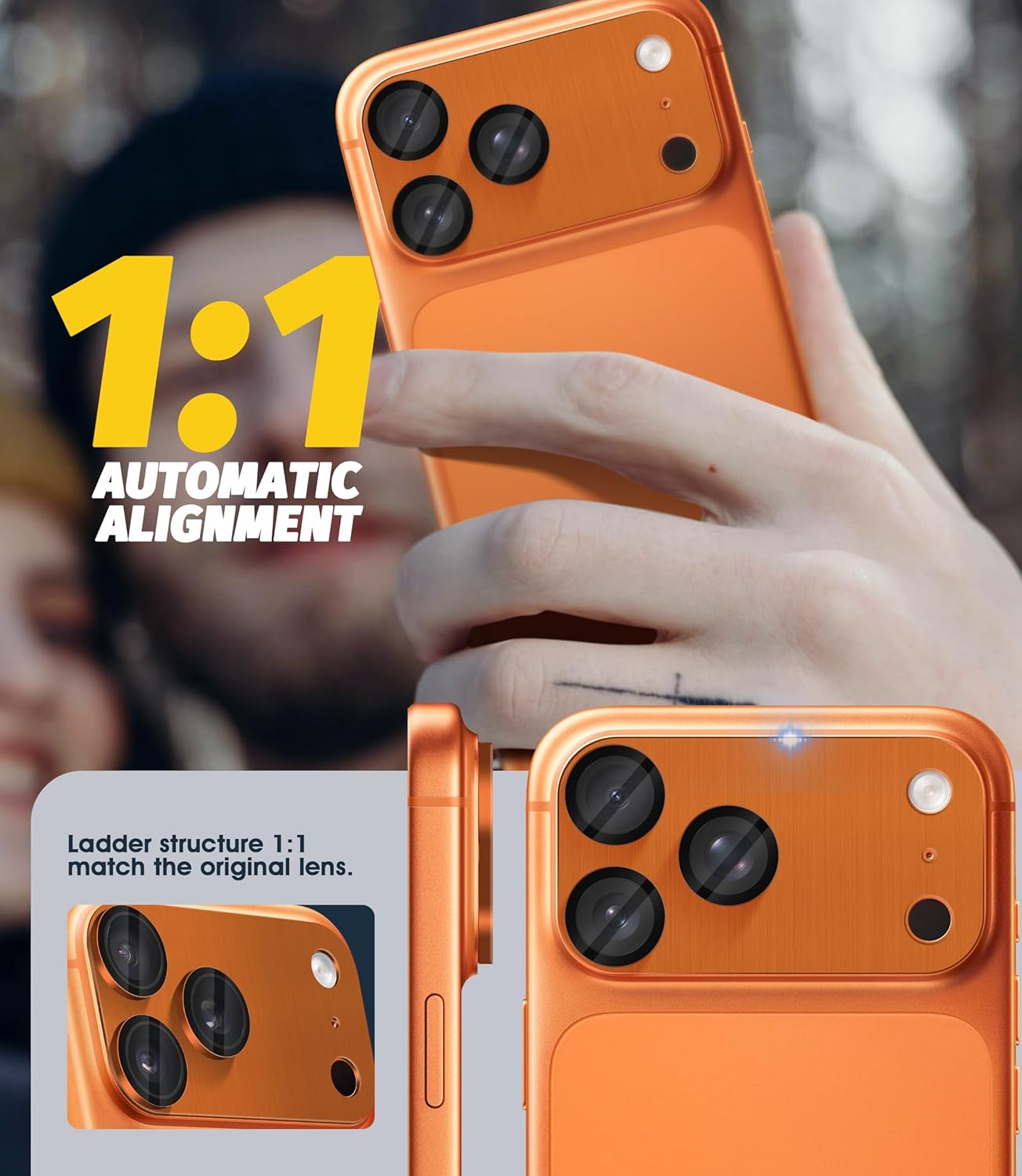 Comment on "Orzero (2 Pack) Camera Lens Protector Compatible for iPhone 17 Pro, Potector de Cámera Premium Brushed Aluminum Alloy and Tempered Glass Precise Camera Cutouts Anti-Scratch - Orange(Orange)"