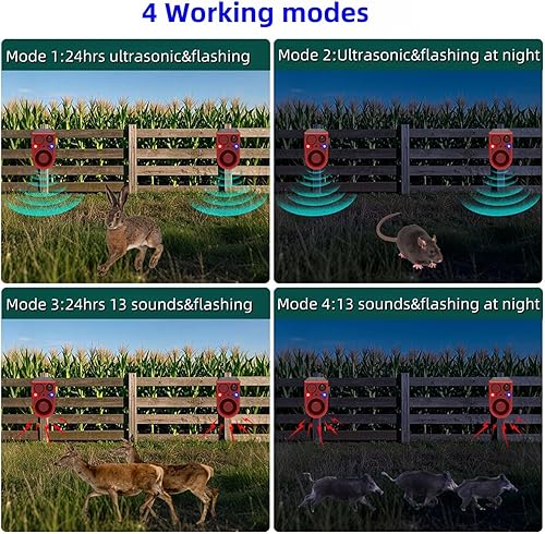 [You decide how it works-4 modes,set via manual switch or remote] Mode 1:24hrs Ultrasonic+warning light ,Mode 2: Ultrasonic with warning light at night,Mode 3:24hrs sounds+warning light,Mode 4:sounds+warning light at night