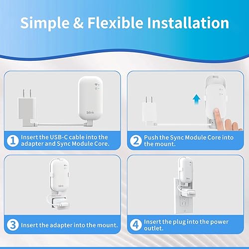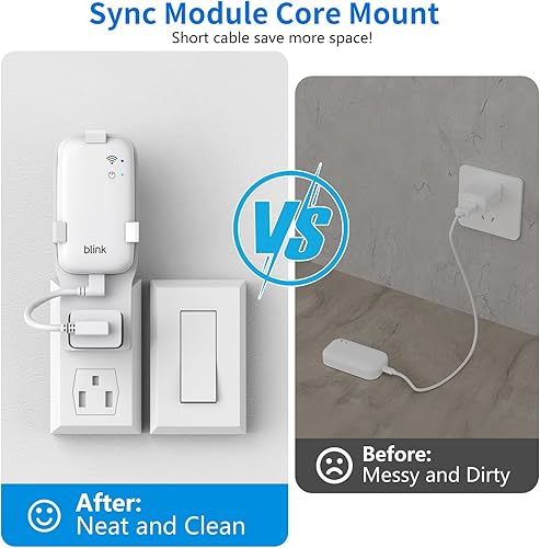 Only Compatible with Blink Sync Module Core: This compact and small outlet sync mount is designed for the all-new Blink Sync Module Core. Using the customized USB-C 3.0 short cables can reduce cluttered cables, save more space, ensuring a clean and organise environment.(Sync Module Core and adapter are not Included)
