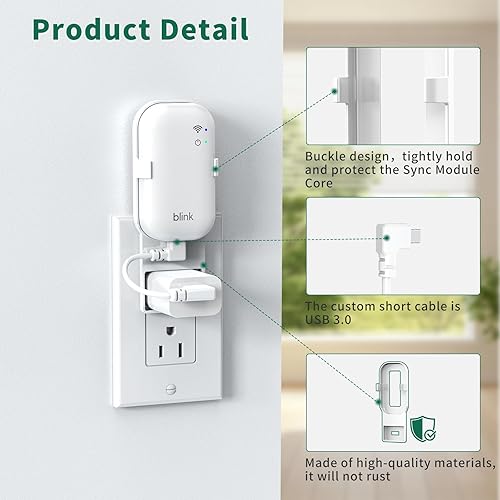 [Compatible Blink Sync Module Core] : This compact and small outlet sync mount is designed for the all-new Blink Sync Module Core.With the customized USB-C short cable allows you to save more space and stay away from cluttered cables