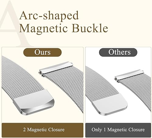 Comment on "Ouwegaga Metal Bands Compatible with Galaxy Watch 7 Band 6 5 4 FE 40mm 44mm/Watch 5 Pro 45mm/6 4 Classic, 20mm Stainless Steel Milanese Loop Magnetic Clasp Strap for Samsung Watch Bands Women Men(Silver,20MM)"
