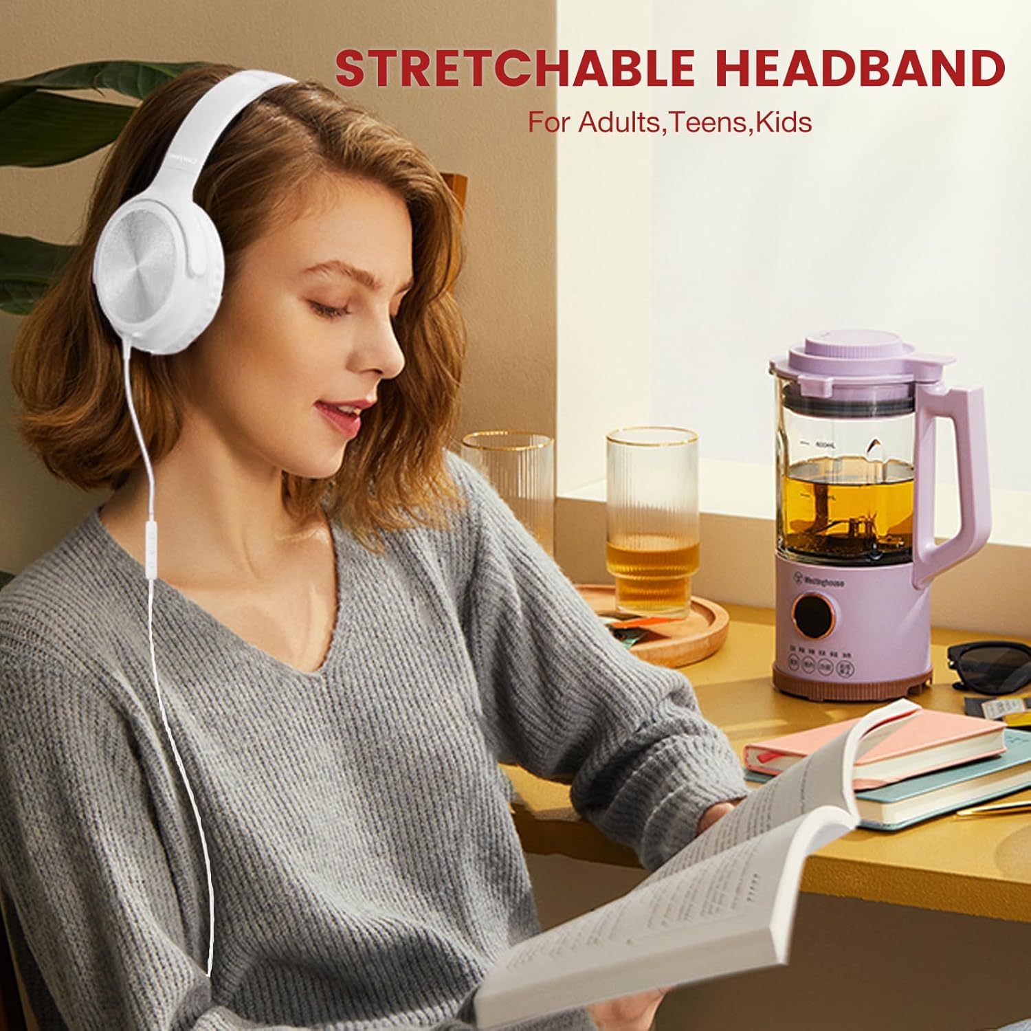 【Immerse Yourself into the Music】3.5mm Wired headphones with microphone adopt High-definition 40 mm driver and compact earcups design, which deliver clear sound. Effortless style and powerful sound let you tune into your own rhythms with the set of over-ear headphones. You can easily use these stereo wired headphones for your workouts, job commute or just for listening at home. With a shared 3.5mm audio port, easily connect another pair to share music or videos—no splitters or special cables needed
