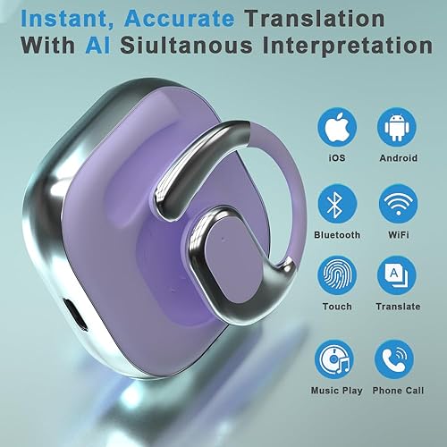 OWS AI Headphone for Multi-Language Translation, Bluetooth Earphone Support 144 Language Real-Time AI Translation, Wireless AI Earbuds Translator with App for Language Learning, Travel, Work (Purple)
