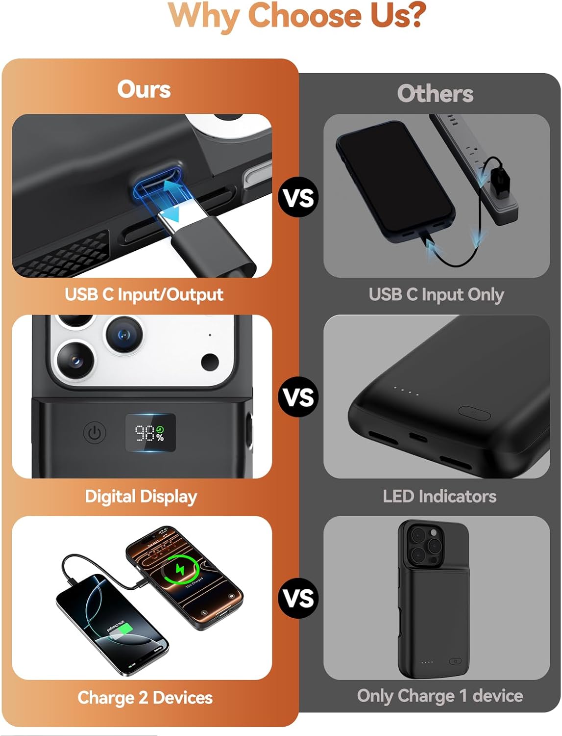 Comment on "PANDUK 9300mAh Battery Case for iPhone 17 Pro(6.3") - x1.9 Extra Battery Life|Bidirectional USB-C|Easy-Fit Silicone Protection|Wireless Charging|Pass-Through Charging & Data Sync|Digital LED Display(iPhone 17 Pro Max - 9300mAh)"