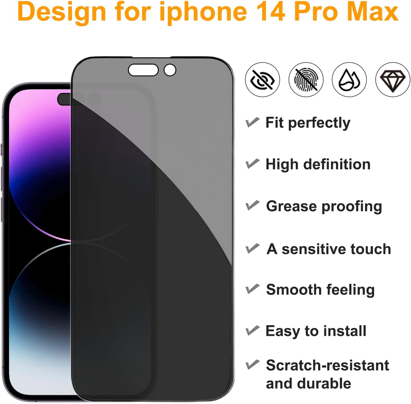 PEHAEL 3+3Pack for iPhone 17 Privacy Screen Protector with Camera Lens Protector Full Coverage Anti-Spy Tempered Glass Film 9H Hardness Easy Installation Bubble Free [6.3 inch](iPhone 14 Pro Max)